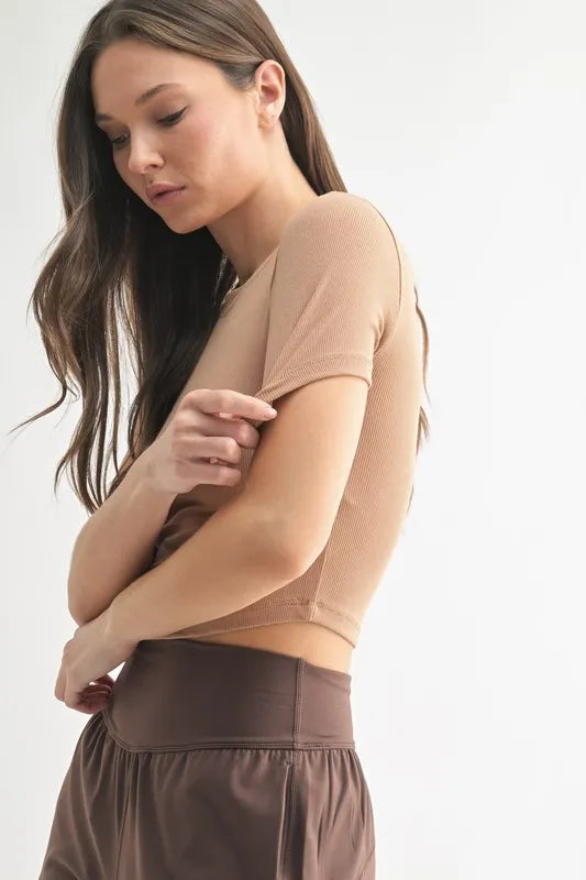 Sold outMONO B Essential Micro-ribbed Cropped Athleisure Tee